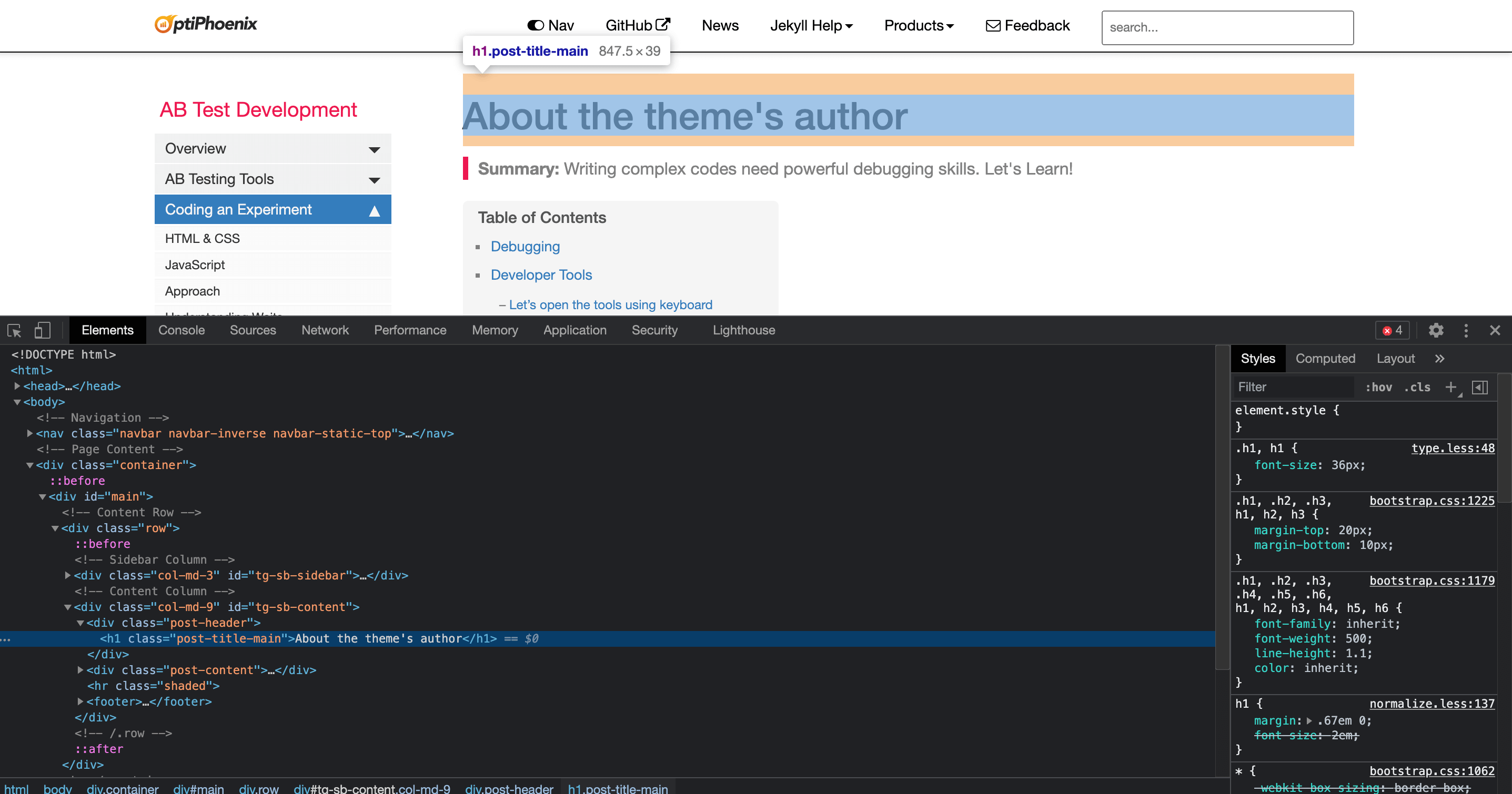Elements: The HTML DOM Tree and the CSS Properties on the right.