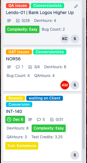 As you remember from our flow, a card is created and moved to the developer’s queue whenever a campaign comes up. The developer, after finishing the development, moves the card to QA for testing purposes. The QA tests the campaign once the card is moved into their queue and passes it back to developer in case of any issues. If there are no issues or once the issues are resolved and verified the QA moves the card to Awaiting Client Feedback queue.