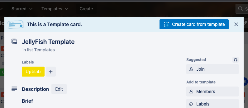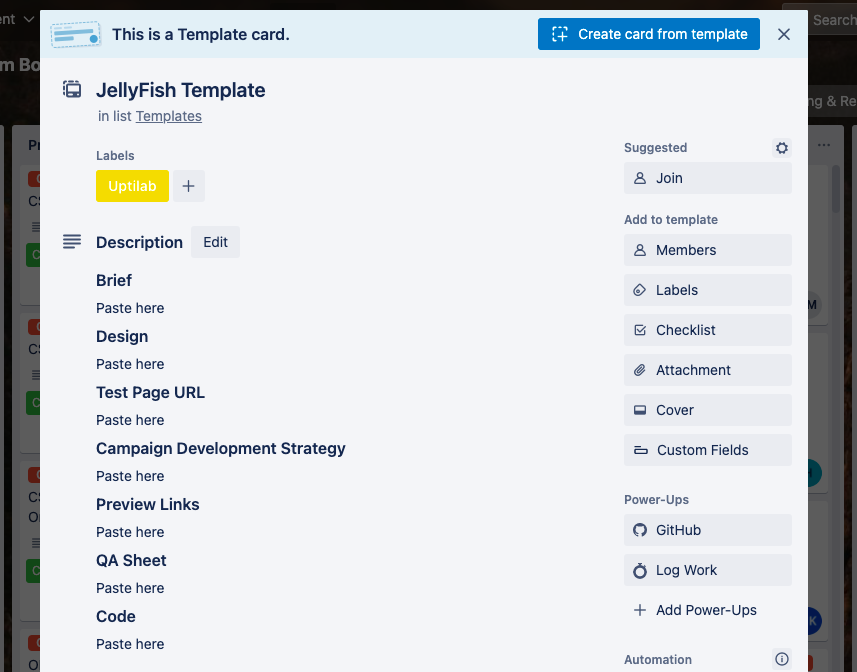 So inside every card there is a description, and inside these template we have a certain format that we follow in that description while we start working on that particular team task. For example in the Jellyfish template we have the brief, description, preview links, QA sheet space and many more. These provide us a list of all the things we need to fill in the description of the campaign when creating a card, before passing it to someone else.