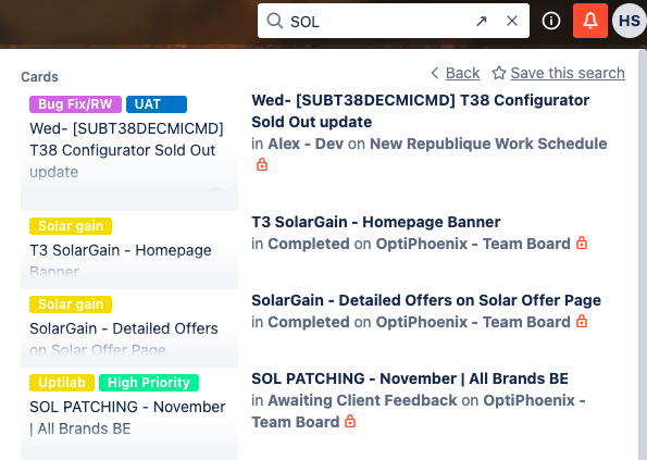 We might need to search for a campaign in the Trello board and it can be done using the Search input on the top. However, it doesn’t just search through that one board, or one workspace but through all the boards you might have access of. This can be quite confusing as the search result might contain cards with similar names mixed with each other.