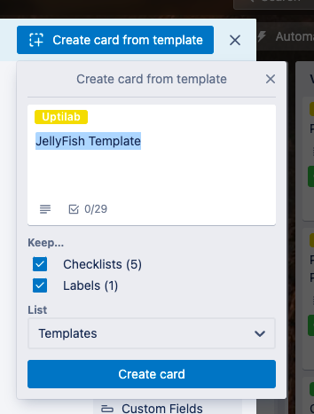- At the top of the template popup, click on the “Create card from template” CTA.